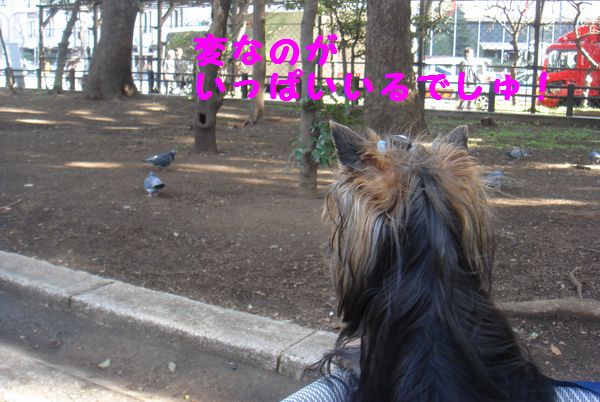 大好きなソラ。初めてのハトに遭遇。