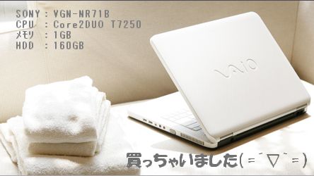 がいっぱい飛んで行きましたぁ 。。。まず1日。福袋など初売商品の購入。 は、なおしゃんのブログにも書いてあるので割愛します ![]() 5日。私の携帯を購入。 これまでは会社の携帯を利用していたんですが個人用に。 なおしゃんがAUなので私もAUを購入です ![]() とってもシンプルなデザイン。なおしゃんの一押しで決めました。 使い勝手も良好 です。なおしゃんの、羨ましいそうな表情が印象的です ![]() あ、でもこれは購入費用はゼロ円でした。 ただ月々の使用料が今後かかってきちゃいますね。 次になおしゃんの車(LAPIN)の車検費用。 完全に忘れていたので1月に入ってから慌てて予約をしました。 軽と言っても侮れない金額がぱおーん っと請求されました![]() 写真は新型のラパンなので、ちょっと違いますが、 なおしゃんの愛車はこんな感じのカワイイ車。 現車は、年末に洗っただけなので、掲載は拒否されました ![]() そして、ここからが本題!! 昨日、待望のNEWパソコンを購入しましたぁ ![]() 今、会社で使ってるノートパソコンが小さくて軽いものなので かなりデカくて重量感があります。 しかし白基調のシンプルさがとっても気に入りました ![]() そんな中、なおしゃん。またまたの高額出費にかなりの凹具合 ![]() 若干(かなり?)イライラしてて、私もすごっく緊張しました ![]() このパソコンを使って、もっともっとブログ頑張ります!! PR 忍者ブログ [PR]