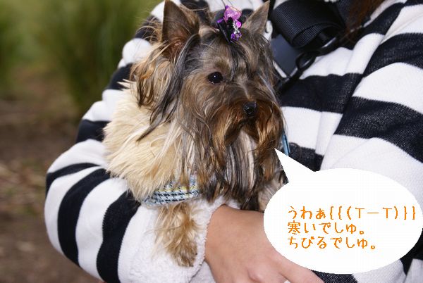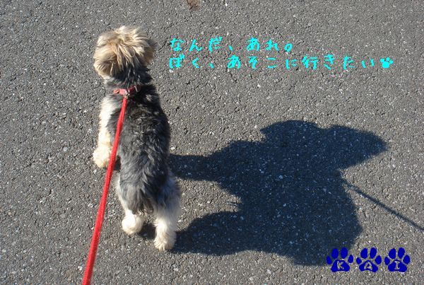 なおしゃんと、カイ&ソラを連れて車で10分程度の S公園へ散歩に行きました。 カイは今日も大興奮。散歩”命”のカイでした。 さて、ソラぼんは?? ソラぼんもご機嫌のようですね♪ 歌詞が違ってるようですが、気にしないでやってください。 カイ~。いいトコ見つけたねぇ。 でも、お尻が冷えちゃいますよー(; ̄O ̄) ちょっと曇ってきちゃって寒くなってきたので1時間程度で 切り上げることにしました。 ソラはブルブル震えだしたので、最後は抱っこです。 そうそう。ちょっと見にくいですが、 ソラの頭のリボンは昨日購入したリボンの1つです。 黒ベースにピンクのアクセントで、とっても素敵なんですが、 ソラが女の子に見えちゃうのが難点です(笑) 忍者ブログ [PR]